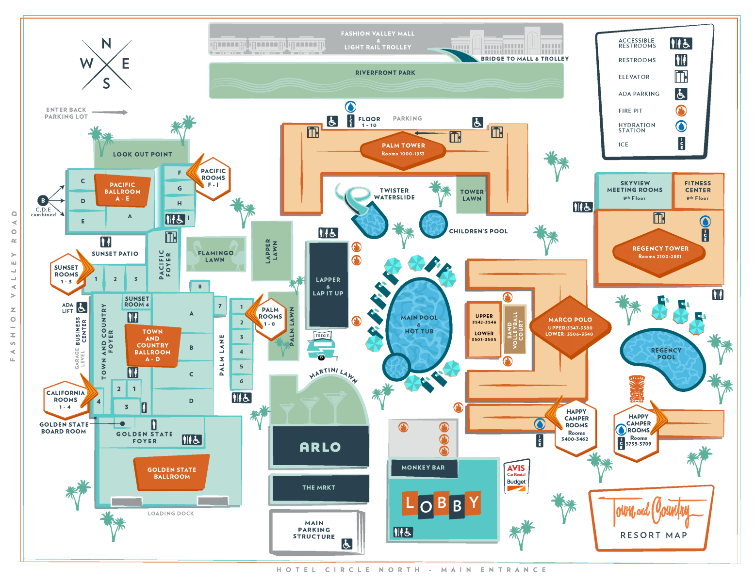 Nestled in the heart of Mission Valley, the Town and Country Resort offers convenient access to some of San Diego’s most iconic destinations. Known for its year round sunshine, coastal views, and laid back energy, San Diego blends vibrant city life with relaxed beach culture, making it an ideal setting to connect, recharge, and explore.